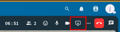 회의에서 중요한 것은 같은 화면을 보면서 대화를 나누는 것 아니겠는가? Nextcloud Talk은 이런 기능을 제공한다. 아래 그림에 표시된 버튼을 눌러준다.
