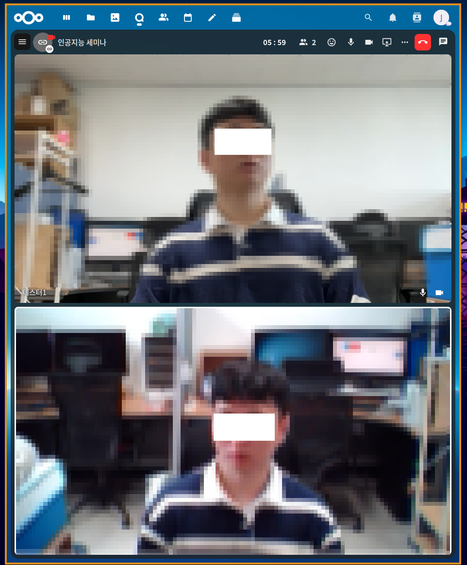 짜자잔~ 그러면 이렇게 두 사람이 들어와있는 영상 회의가 시작된다. 이제 회의를 진행하면 되겠다.
